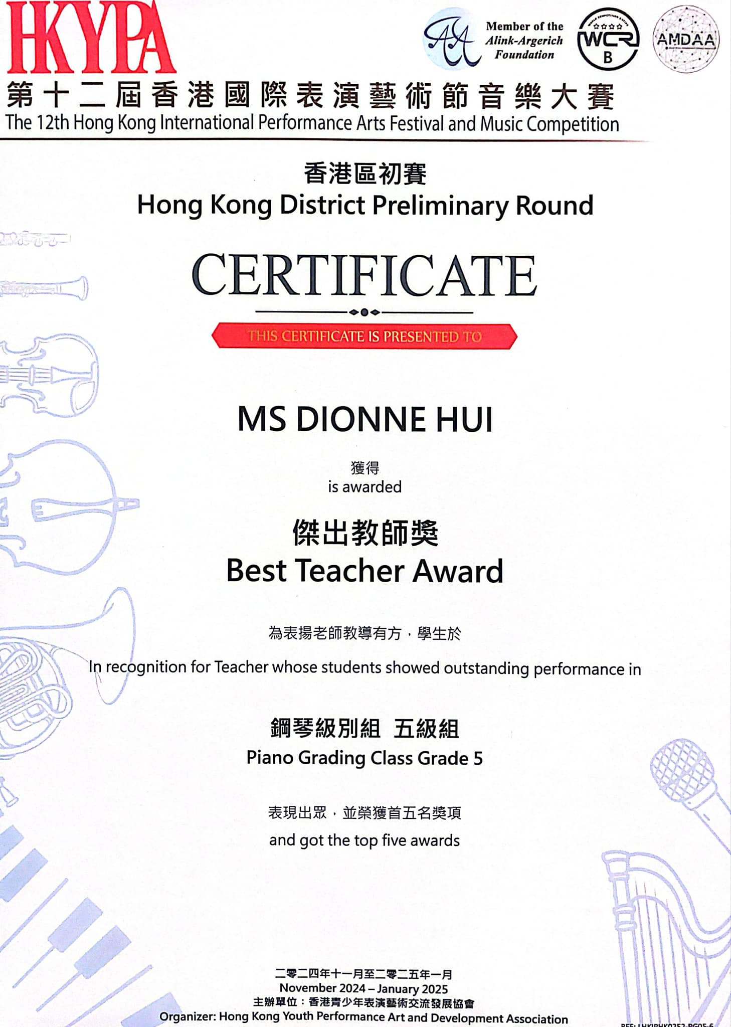 第七屆李斯特 (布達佩斯) 國際公開賽優秀導師獎